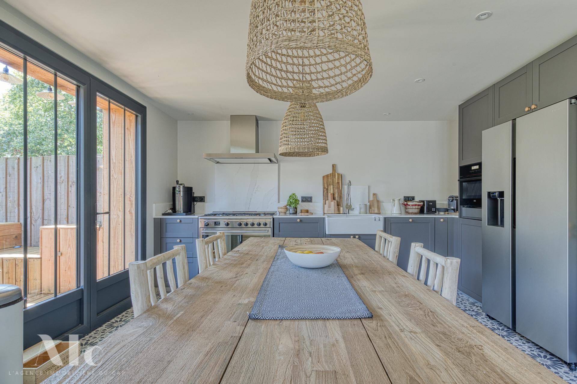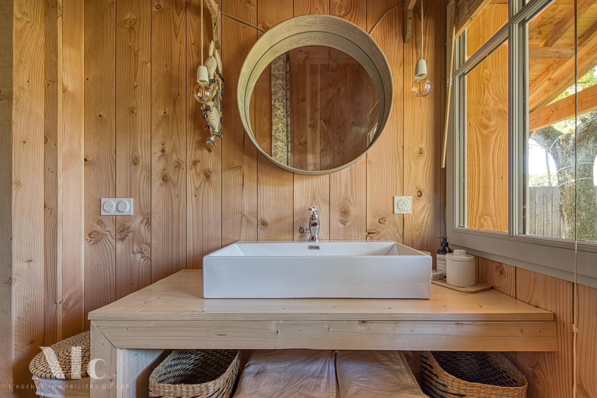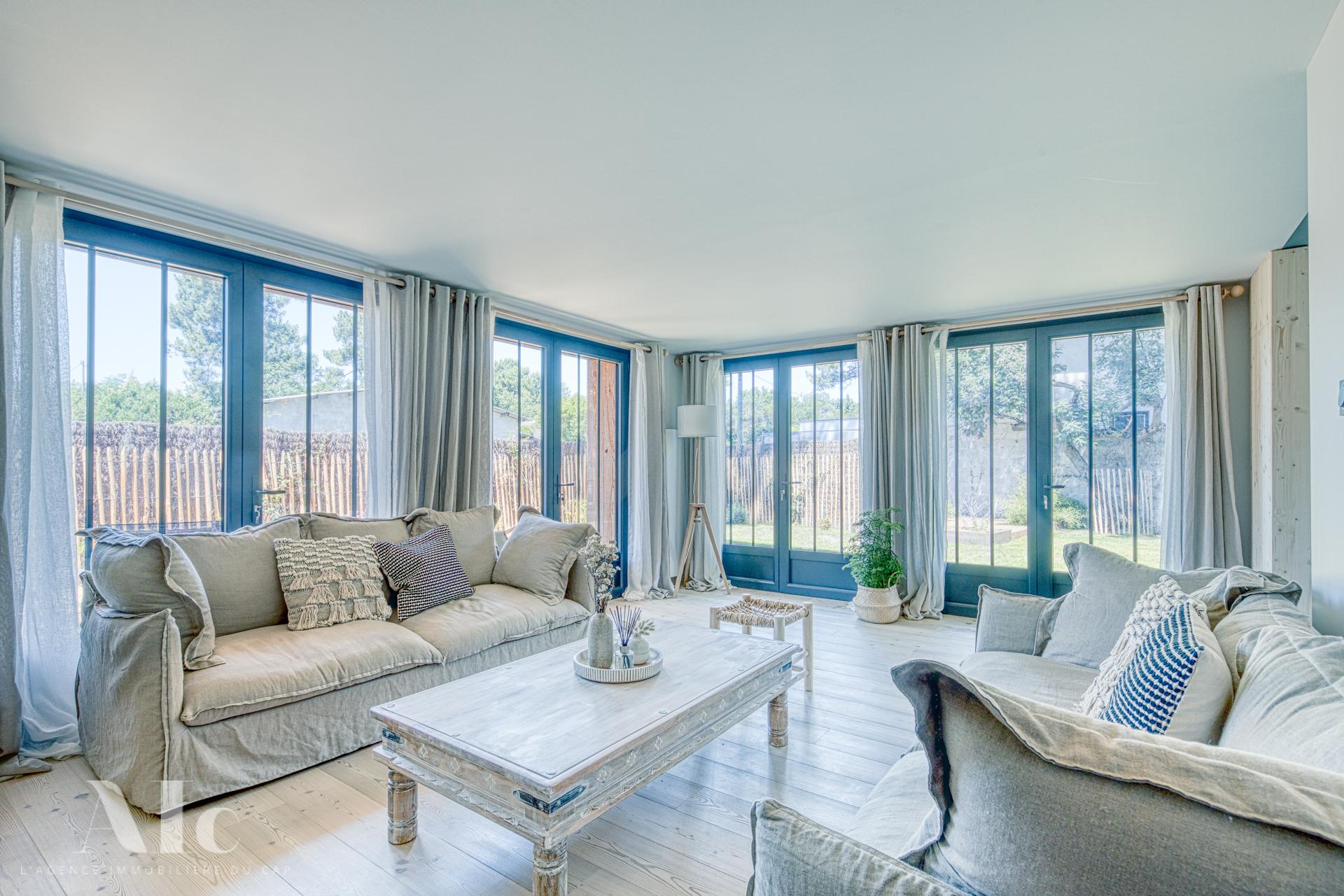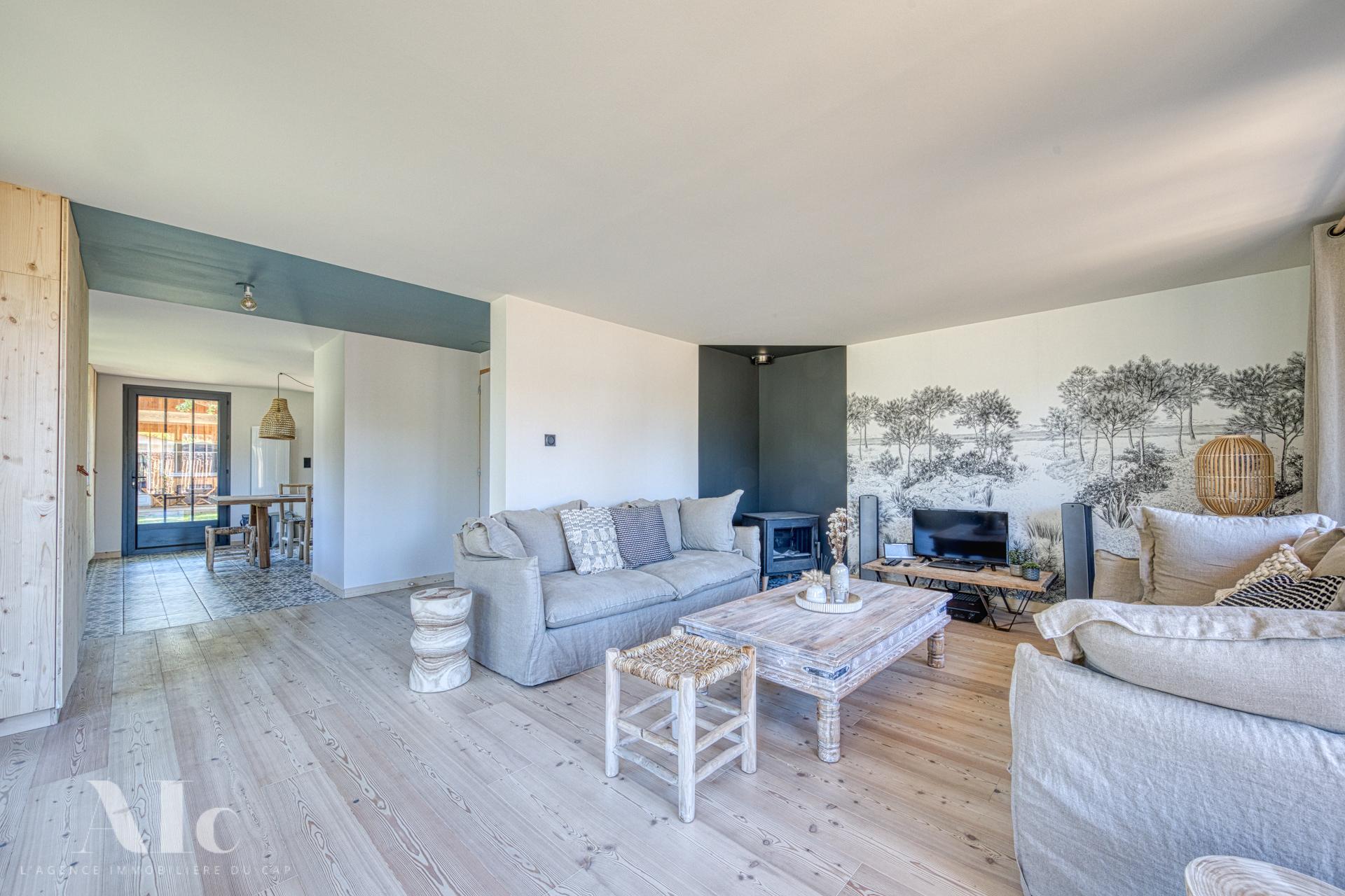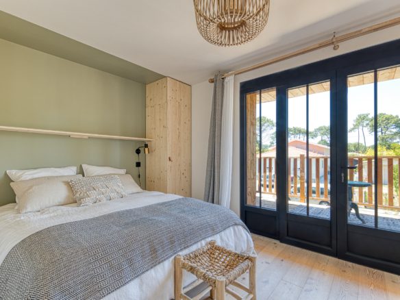 This delightful wooden villa is situated in the heart of the charming village of Petit Piquey on the Cap Ferret peninsula, on enclosed grounds spanning 560 m².