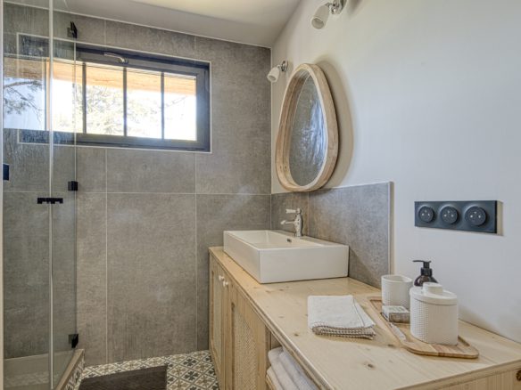 The villa boasts beautiful fittings and décor. Light wood and large bay windows create a calm atmosphere conducive to well-being. Sheltered outdoor terraces provide additional living space.