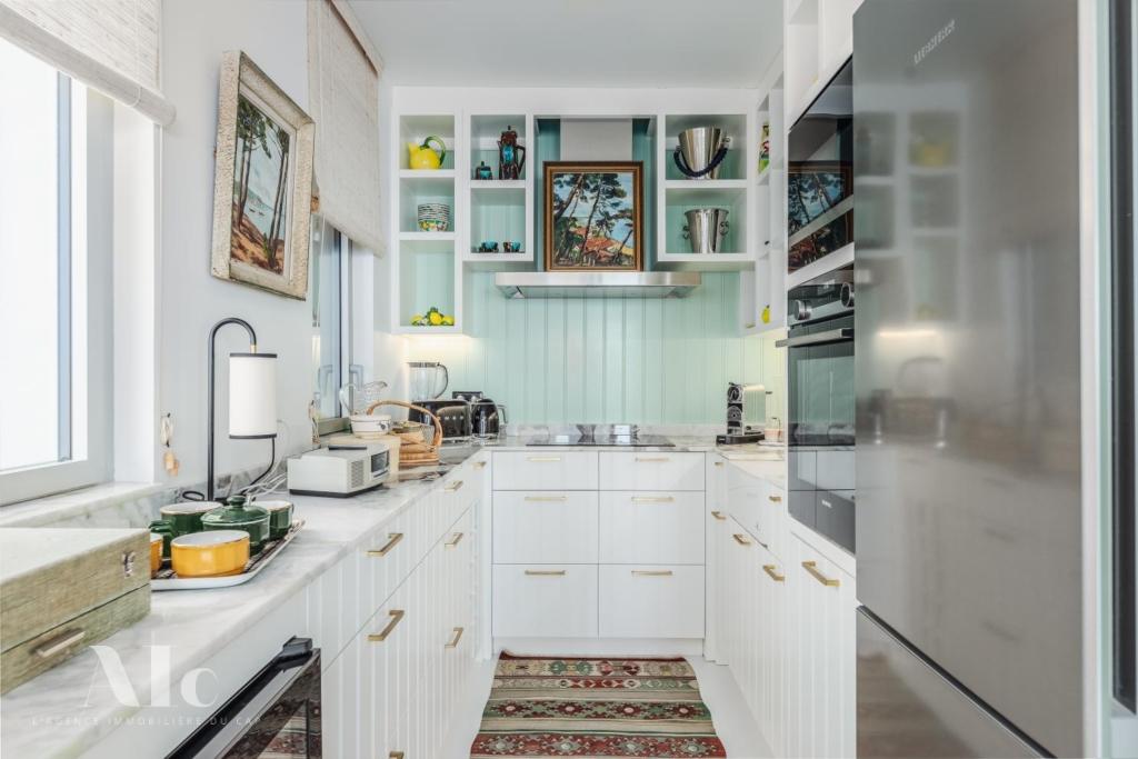 The open plan kitchen is fully equipped and well laid out. The terrace overlooking the bay is uncluttered and well lit.