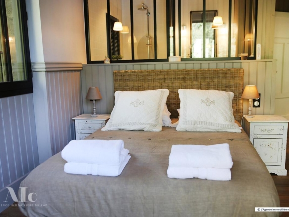 The lovely Américains beach is particularly popular for its intimate setting and family atmosphere, typical of the bay area. This splendid villa is available to rent for the high season, allowing you to soak up the local atmosphere all summer long.