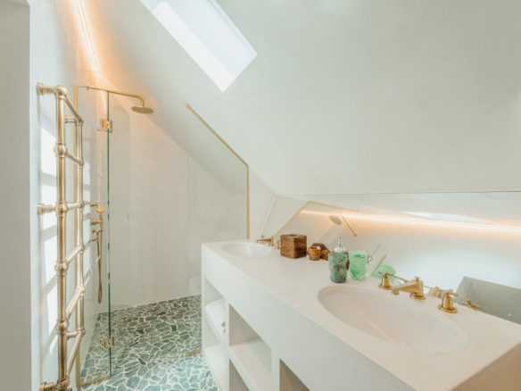 The villa is divided into two independent living areas offering 270 sq. m of absolute comfort and a total of five en suite bedrooms. The recently renovated villas are tastefully decorated and furnished. The very large garden is planted with local tree species.