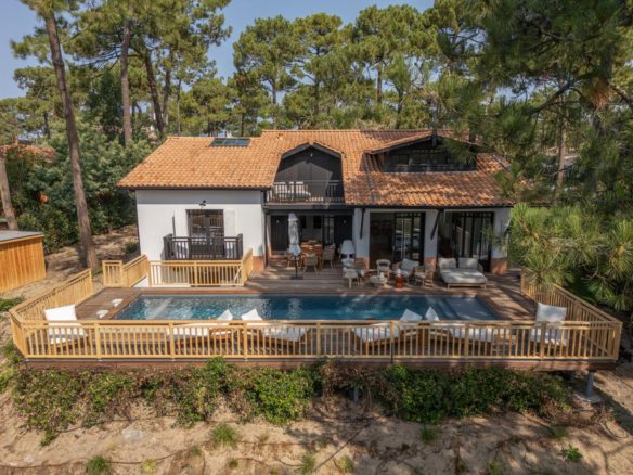 L’avancée sableuse du Mimbeau structure le panorama vers la dune du Pilat ; les couleurs y sont changeantes et étonnantes selon l’orientation et les saisons, passant de l’ocre au jaune d’or en passant par le rose.